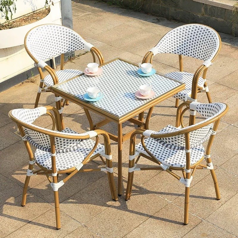 ეზოს ავეჯის კომპლექტი მაგიდა + 4 სკამი (რატანი+მინა)
