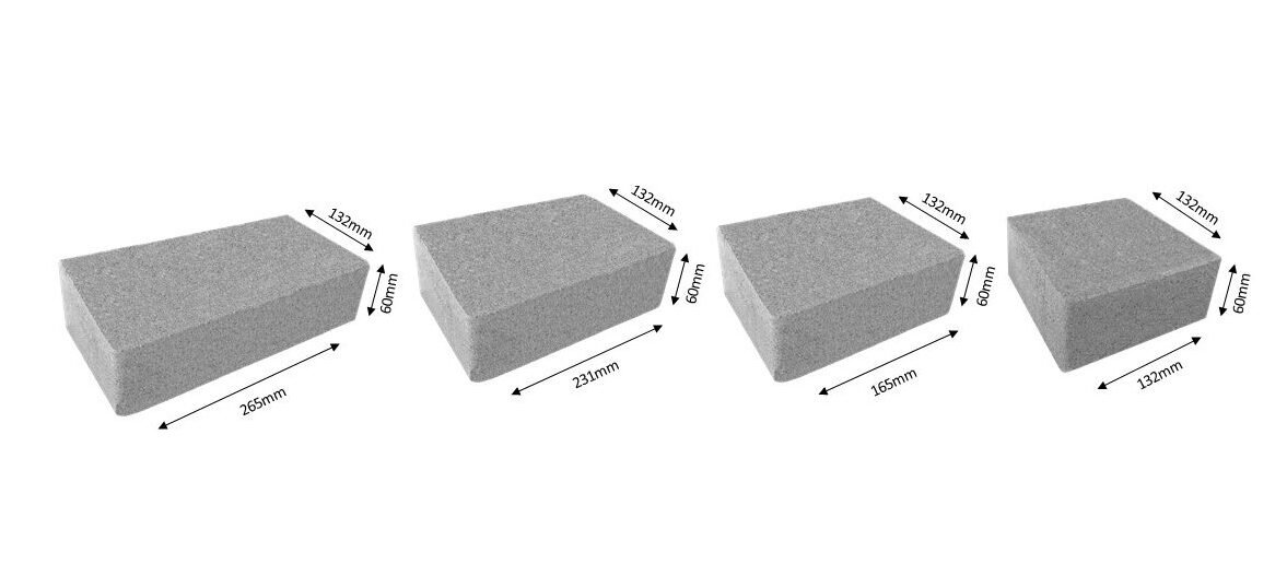 ზომა : 24×16 – 16×16 – 8×16 სმ სისქე : 6სმ